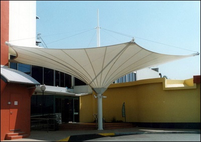 Kedron-Wavell RSLProviding shelter when entering the Club, a Lotus from our Flexshade range was used for this space. The Lotus is an inverted, hexagonal cone where all support frames are concealed in its waterproof membrane. No drips from the edges for these patrons. |