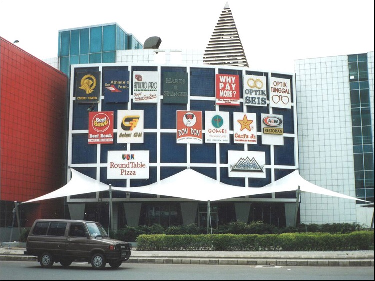 Tension Span adds to Jakarta's skyline with swooping Tension Membrane Structures reminicent of a Java Longhouse and an attractive Eatery Terrace Canopy are features of Kelapa Gading Mall in Jakarta.