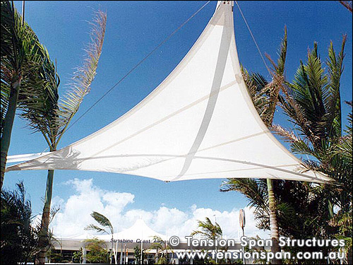 Wing like Canopies span the main carpark walkway providing shade and visual impact to the entrance. Internal Membranes consisting of 21 individual Hypars of high translucency fabric are located under the central glass skylight which is over 90 metres in length.