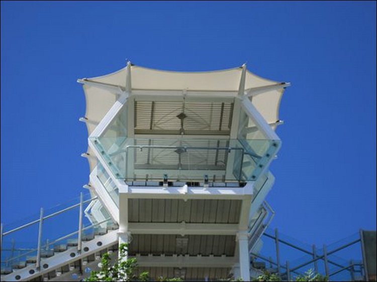 The project was executed with precision and made the courtyard a pleasant shaded summer space with some degree of weather protection. The unique edge detail of overlapping sails on a high wall with cable elements was effective in adding visual impact to the Courtyard.
